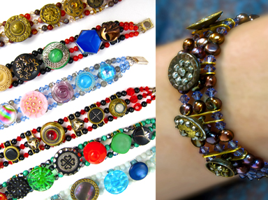 Exquisite treasures from Gwendolyne’s prized collection. In the past buttons were more than functional objects. They were beautifully crafted works of art. Celebrate that creative spirit everyday in these vintage and antique button bracelets.  |
