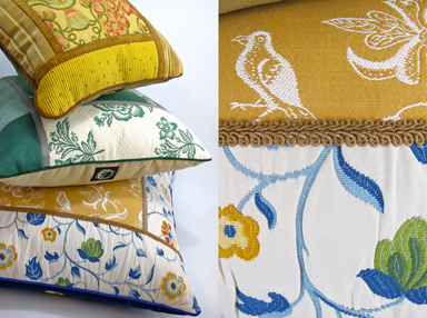 Gwendolyne’s artful pillows crafted from the finest designer fabrics, woven tapestries and trim are a perfect expression of your individuality and style. If you’re looking for a beautiful highlight to your home these pillows are for you. Custom orders welcome.  |