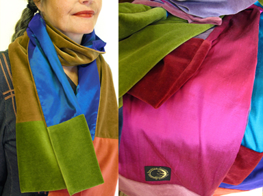 Velvet and silk are two luxurious fabrics that look and feel divine together. That’s the inspiration behind this exciting new scarf collection. Fit for a queen, a special treat for those with wool sensitivities. Get them while you can.  |